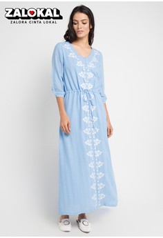 Penawaran DiskonPulled Sleeve Dress with Embroidery ayo segera diamankan