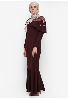 Penjual dress muslim Embellished Lace Pieced Mermaid Dress