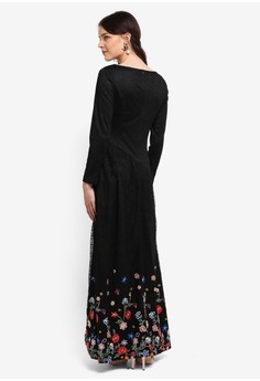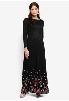 Koleksi Foto dress muslim Embroidered Lace Assymetric Flare Dress