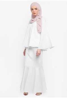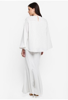 Produk Stripe Panel Loose Top \u0026 Skirt Set kami rating di nomor ke- 39 untuk kategori atasan muslim.