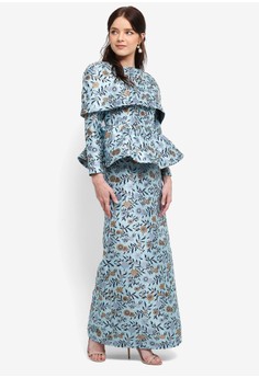 Penjual atasan muslim Jacquard Cape Peplum Top Set