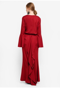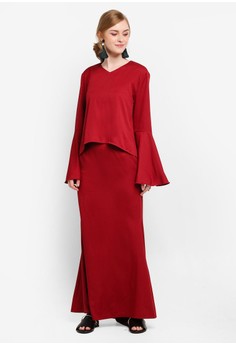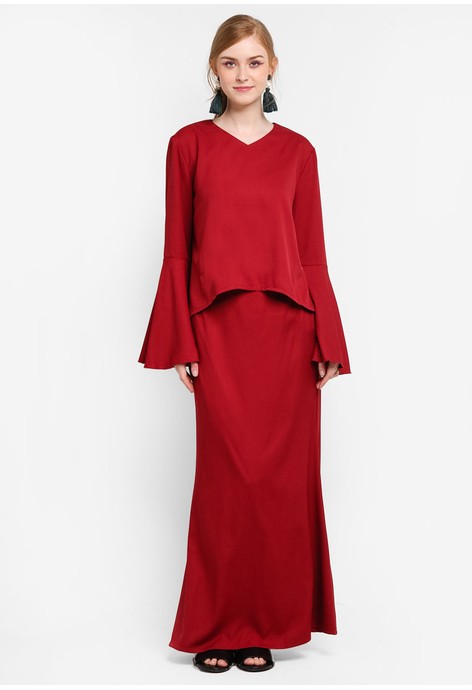 Produk Structured Flared Sleeves Top with Mermaid Skirt memiliki Warna red dan Tersedia dalam Ukuran / Size {"label":"L","size":"L"},{"label":"XL","size":"XL"}, Produk ini Bukan New Arrival