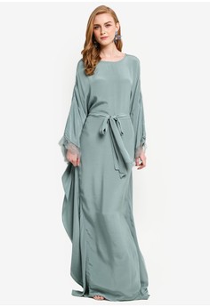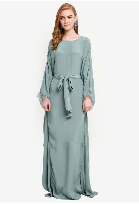 Penjual dress muslim Double Layers Lace Sleeves Kaftan
