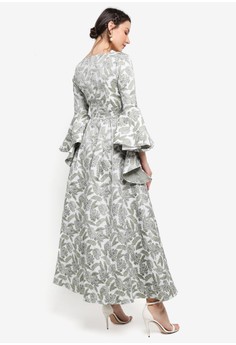 Koleksi Foto dress muslim Jacquard Frill Sleeve Dress