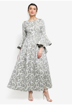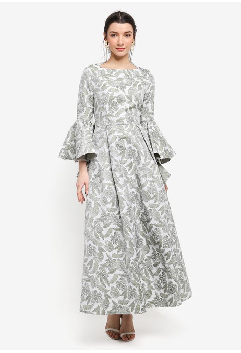 Penjual dress muslim Jacquard Frill Sleeve Dress