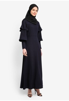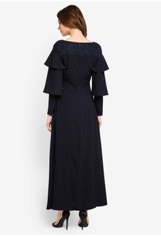 Penjual dress muslim Lace Pieced Layered Sleeve Dress