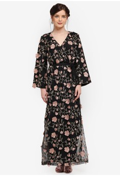 Koleksi Foto dress muslim Floral Embroidered Wrap Dress