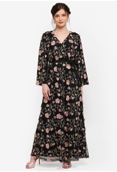 Penawaran Diskon Floral Embroidered Wrap Dress sayang jika tidak diamankan