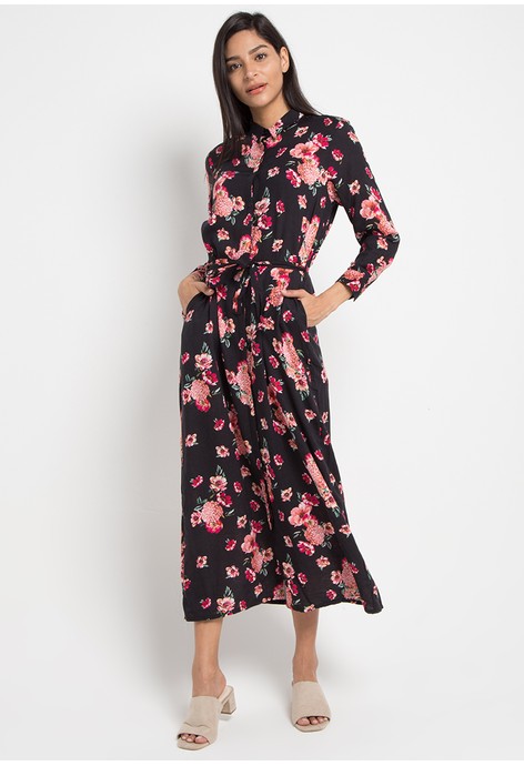 Produk Ashya Floral Dress memiliki Warna black|multi dan Tersedia dalam Ukuran / Size {"label":"M","size":"M"},{"label":"L","size":"L"}, Produk ini Bukan New Arrival