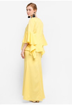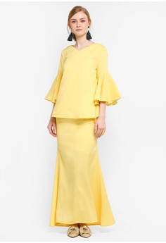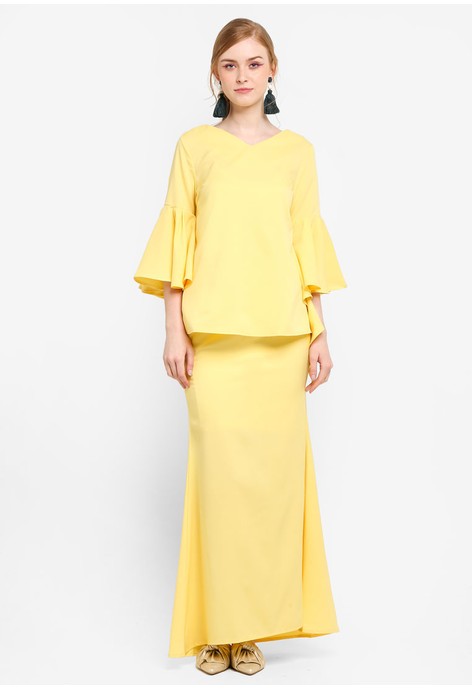 Produk Flared Frille Sleeve Kurung memiliki Warna yellow dan Tersedia dalam Ukuran / Size {"label":"L","size":"L"}, Produk ini Bukan New Arrival